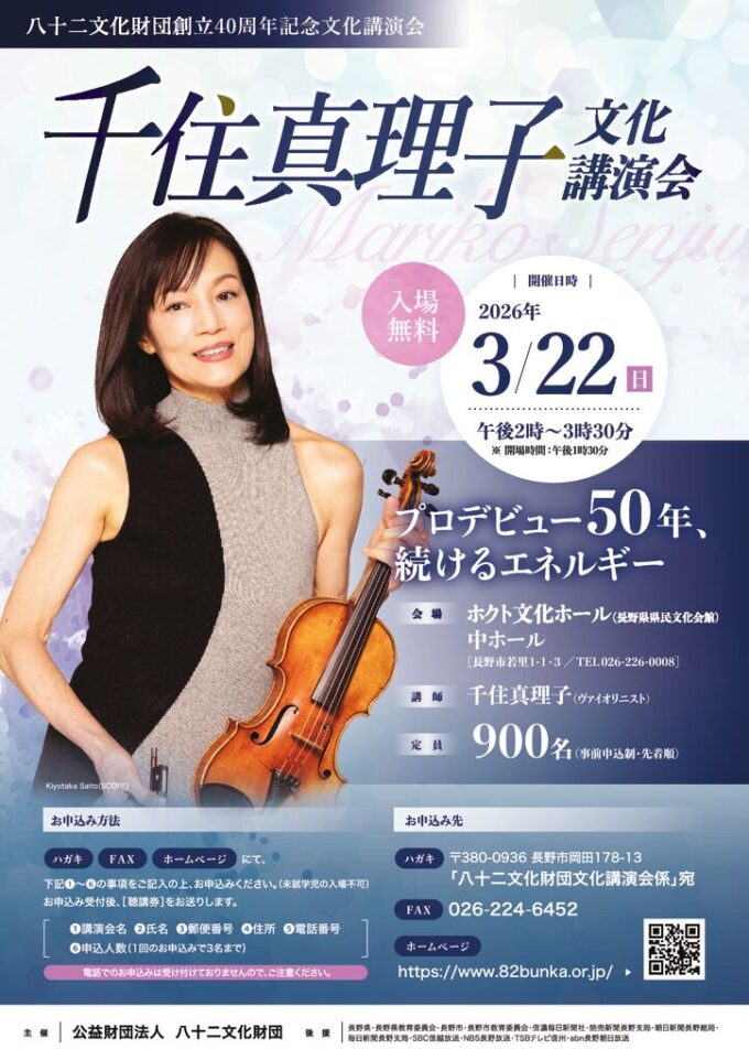 八十二文化財団創立40周年記念「千住真理子文化講演会」『プロデビュー50年、続けるエネルギー』